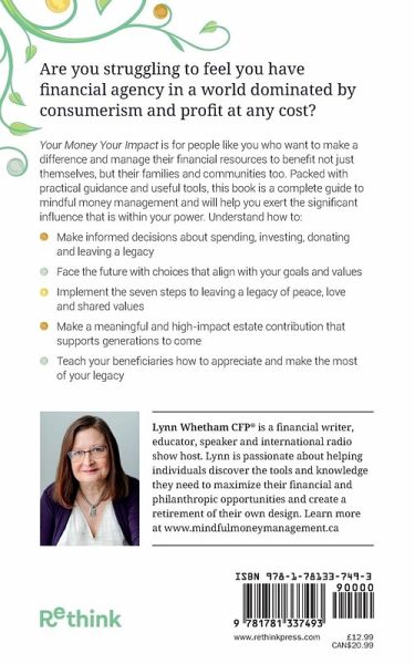 Are you struggling to feel you have financial agency in a world dominated by consumerism and profit at any cost? Your Money Your Impact is for people like you who want to make a difference and manage their financial resources to benefit not just themselves, but their families and communities too. Packed with practical guidance and useful tools, this book is a complete guide to mindful money management and will help you exert the significant influence that is within your power. Understand how to: Make informed decisions about spending, investing, donating and leaving a legacy Face the future with choices that align with your goals and values Implement the seven steps to leaving a legacy of peace, love and shared values Make a meaningful and high-impact estate contribution that supports generations to come Teach your beneficiaries how to appreciate and make the most of your legacy