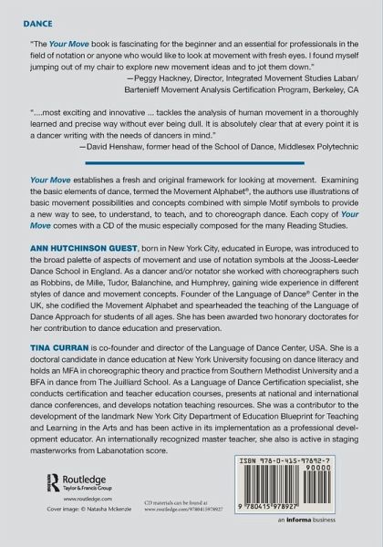 This second edition of this well-known text book now offers downloadable resources to accompany the dance studies throughout the chapters. The authors take a new approach to teaching, learning and creating with notation through movement exploration, exercises and short dances, thus enlarging the scope of the book to teachers of movement, movement analysis and choreography as well as the traditional dance notation students. Updated and enlarged to reflect the most recent scholarship and through a series of exercises, this book guides students through: movement, stillness, timing, shaping, accents travelling direction, flexion and extension, rotations, revolutions and turns supporting, change of support springing balance relationships. All of these movements are explored sequentially and are represented symbolically in notation so the student learns how to physically articulate, notate and describe the movements as they are performed.