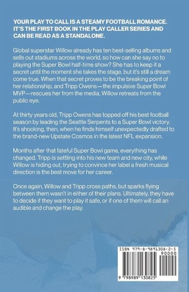 Global superstar Willow already has ten best-selling albums and sells out stadiums across the world, so how can she say no to playing the Super Bowl half-time show? She has to keep it a secret until the moment she takes the stage, but it's still a dream come true. When that secret proves to be the breaking point of her relationship, and Tripp Owens-the impulsive Super Bowl MVP-rescues her from the media, Willow retreats from the public eye. At thirty years old, Tripp Owens has topped off his best football season by leading the Seattle Serpents to a Super Bowl victory. It's shocking, then, when he finds himself unexpectedly drafted to the brand-new Upstate Cosmos in the latest NFL expansion. Months after that fateful Super Bowl game, everything has changed. Tripp is settling into his new team and new city, while Willow is hiding out, trying to convince her label a fresh musical direction is the best move for her career. Once again, Willow and Tripp cross paths, but sparks flying between them wasn't in either of their plans. Ultimately, they have to decide if they want to play it safe, or if one of them will call an audible and change the play.