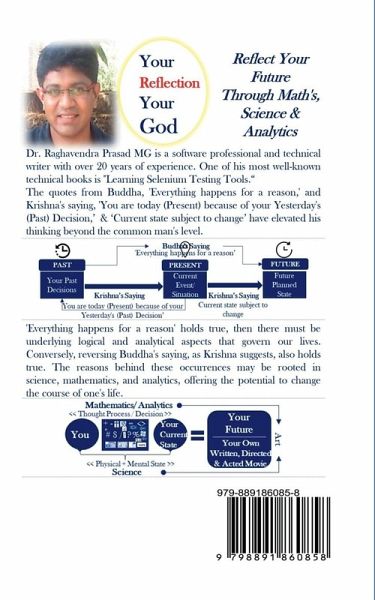 Title: "Your Reflection Your God" "Art To Reflect Yourself For Successful Future Through Mathematics, Science, and Analytics............!" "This Books is a Best friend on the journey to your Success." "In a world of uncertainty, "Your Reflection Your God" guides you toward a prosperous future. Dr. Raghavendra Prasad MG's book combines science, math, and analytics with ancient wisdom, revealing the secrets to shaping your destiny. Learn to change your life through thought processes and present decisions, embracing mathematical, scientific, and analytical methodologies for success. This book is a guide for navigating life's complexities, making informed choices, and achieving aspirations. It explores the connection between science, morality, righteousness, uprightness, and success. "Your Reflection Your God" is more than a book; it's a transformative journey toward a brighter future. If you're ready to shape your destiny with science, mathematics and analytics, this book is your key to success. Intended for those passionate about achieving goals, without influential connections or substantial support. This book acts as a friend and teacher, helping you understand life's purpose and reach greater heights. Note: This is not a philosophical book but a guide offering actionable insights through Arts, Math, Science, and Analytics for success.