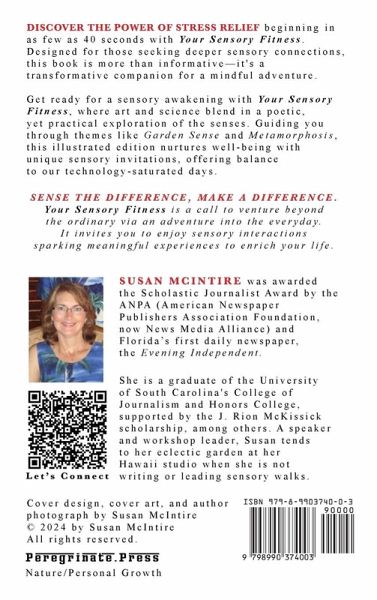 Susan McIntire is a celebrated author and speaker. She was initially recognized in her high school years by receiving the Scholastic Journalist Award from the ANPA (American Newspaper Publishers Association Foundation, now News Media Alliance) and Florida's pioneering daily, the "Evening Independent." An alumna of the University of South Carolina's College of Journalism and Honors College, her academic pursuits were supported by the prestigious J. Rion McKissick journalism scholarship. With over 40 years of dedicated research, Susan's profound personal journey into sensory fitness began with an unexpected challenge-a two-year loss of much of her taste due to a routine medical procedure-which sparked a deep interest in sensory perception and its profound impact on life. This personal experience, coupled with her role as a mother to a child on the autism spectrum, has deeply informed her approach to writing and advocacy in sensory well-being. These experiences have equipped Susan with unique insights into the often-overlooked yet vital aspects of sensory interaction. "Your Sensory Fitness" is not just another book on sensory well-being. It's Susan's guided approach to exploring themed sensory invitations using nature. This unique blend of original poetry, art, reflections, guided indoor and outdoor walks, science, and nature guides readers through practical and intriguing sensory adventures. Built on a lifetime of work, it's designed to be both informative and transformative, offering readers a companion for a mindful awakening of their senses. At home in Hawaii, Susan shares her life with her family and a menagerie of beloved animals, including a bird, two cats, and a dog. Overcoming a childhood allergy to pets, which once prevented her from even visiting pet stores or fairs, she now cherishes the joy and sensory richness they bring. Her pets offer a daily exploration of non-verbal communication and deepen her appreciation of the sensory bonds we share. Currently focused on sharing her groundbreaking work, Susan invites readers to discover how sensory awareness can transform everyday experiences into extraordinary ones. Her book promises to be a valuable resource for anyone looking to enhance their sensory perceptions and find balance in our technology-driven days.