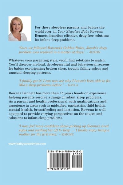 For those sleepless parents and babies the world over, in Your Sleepless Baby Rowena Bennett describes effective, drug-free solutions for infant sleep problems. Whatever your parenting style, you’ll find solutions to match. You’ll discover medical, developmental and behavioural reasons for babies experiencing broken sleep, trouble falling asleep and unusual sleeping patterns. Rowena Bennett has more than 15 years hands-on experience helping parents resolve a range of infant sleep problems. As a parent and health professional with qualifications and experience in areas such as midwifery, paediatrics, child health, mental health, breastfeeding and lactation, Rowena is well equipped to provide varying perspectives on the causes and solutions to infant sleep problems. ‘Once we followed Rowena’s Golden Rules, Jonah’s sleep problem was resolved in a matter of days.’ – JUSTIN ‘I finally get it! I can now see why I haven’t been able to fix Mia’s sleep problems before.’ – KAYLA ‘I now feel more confident about picking up Sienna’s tired signs and settling her off to sleep … I finally enjoy being a mother for the first time.’ – SIMONE Being a parent is like being on a roller coaster ride. There are plenty of ups and downs, enjoyment and frustrations. As a parent I have experienced my share of testing times along with the many joys of parenting. The most challenging times were when my children were babies, toddlers and teenagers. I was already a registered nurse and midwife by the time my children came along. As a result of having personally experienced the demoralising effects of post natal depression I wanted to help others who found the early years of parenting a struggle, and so I decided to train as a mental health nurse and later as a child health nurse and lactation consultant. For the past 17 years I have been employed as a child health nurse in an early parenting residential centre, where my role primarily involved assisting parents to resolve complex baby and toddler care problems. I know that the families who gain admission to these centres are only the tip of the iceberg. There are countless other parents out there desperately searching for answers to their child’s feeding or sleeping problems. About 10 years ago I started an online parenting consultation service, BabycareAdvice.com. I have enjoyed a high success rate, and a great deal of pleasure, assisting parents world-wide to find solutions to baby or toddler care problems that match their circumstances. Problems that their local healthcare providers were in many instances unable to resolve. The reason for my success is because my expertise lies in resolving behavioural problems; the most common of all problems experienced by healthy babies and toddlers. I knew I could reach more parents though books than individual consultations. In 2012 I published Your Sleepless Baby: The Rescue Guide, the first of what will become a series of baby care books. After 37 years as a nurse I now live and work from home on the glorious Sunshine Coast of Queensland with my husband, Bruce and dog, Ruby. Bruce and I have the time to enjoy our children and grandchildren who visit regularly. We get to reap the rewards for being parents and the joy of being grandparents!