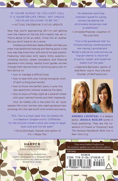 From Andrea Lavinthal and Jessica Rozler, the acclaimed authors of The Hookup Handbook and Friend of Frenemy?, comes Your So-Called Life--a must-have, hilarious, and absolutely unique bible for any woman in her late 20s and 30s who's making the big move into real adulthood. With invaluable ideas and advice from a host of experts--from former Top Chef host and celebrity chef Katie Lee to dating expert Rachel Greenwald to Bank of Mom and Dad host Farnoosh Torabi--Your So-Called Life is ideal for every young woman at a crossroads, looking for a career, a soulmate, a home.
