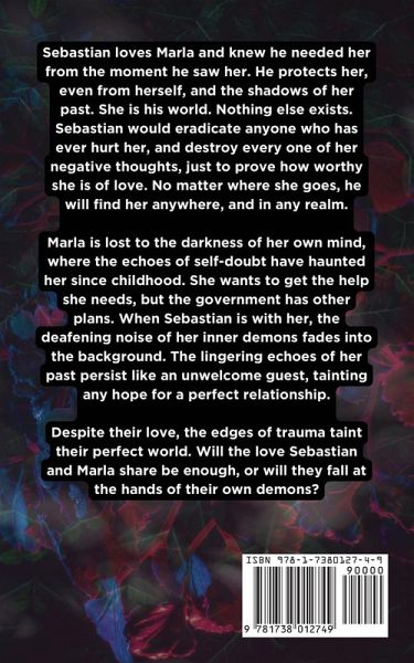 Sebastian loves Marla and knew he needed her from the moment he saw her. He protects her, even from herself, and the shadows of her past. She is his world. Nothing else exists. Sebastian would eradicate anyone who has ever hurt her, and destroy every one of her negative thoughts, just to prove how worthy she is of love. No matter where she goes, he will find her anywhere, and in any realm. Marla is lost to the darkness of her own mind, where the echoes of self-doubt have haunted her since childhood. She wants to get the help she needs, but the government has other plans. When Sebastian is with her, the deafening noise of her inner demons fades into the background. The lingering echoes of her past persist like an unwelcome guest, tainting any hope for a perfect relationship. Despite their love, the edges of trauma taint their perfect world. Will the love Sebastian and Marla share be enough, or will they fall at the hands of their own demons?