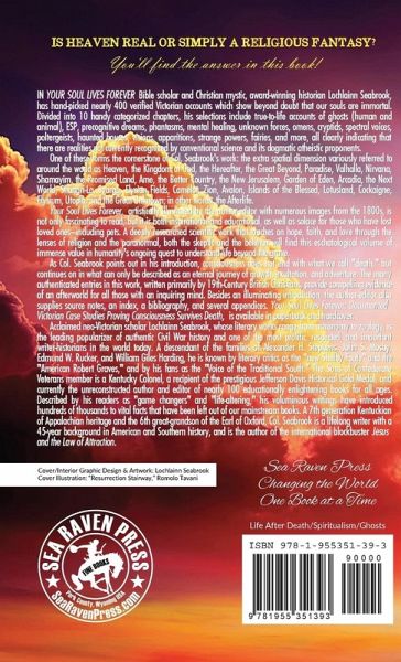 In Your Soul Lives Forever Bible scholar and Christian mystic, award-winning historian Lochlainn Seabrook, has hand-picked nearly 400 verified Victorian accounts which show beyond doubt that our souls are immortal. Divided into 10 handy categorized chapters, his selections include true-to-life accounts of ghosts (human and animal), ESP, precognitive dreams, phantasms, mental healing, unknown forces, omens, cryptids, spectral voices, poltergeists, haunted houses, visions, apparitions, strange powers, fairies, and more, all clearly indicating that there are realities not currently recognized by conventional science and its dogmatic atheistic proponents. One of these forms the cornerstone of Col. Seabrook's work: the extra spatial dimension variously referred to around the world as Heaven, the Kingdom of God, the Hereafter, the Great Beyond, Paradise, Valhalla, Nirvana, Shamayim, the Promised Land, Ame, the Better Country, the New Jerusalem, Garden of Eden, Arcadia, the Next World, Shangri-La, Svarga, Elysian Fields, Camelot, Zion, Avalon, Islands of the Blessed, Lotusland, Cockaigne, Elysium, Utopia, and the Great Unknown; in other words, the Afterlife. Your Soul Lives Forever, artistically illustrated by the author-editor with numerous images from the 1800s, is not only fascinating to read, but it is both inspirational and educational, as well as solace for those who have lost loved ones - including pets. A deeply researched scientific work that touches on hope, faith, and love through the lenses of religion and the paranormal, both the skeptic and the believer will find this eschatological volume of immense value in humanity's ongoing quest to understand life beyond the grave. As Col. Seabrook points out in his introduction, consciousness does not end with what we call "death," but continues on in what can only be described as an eternal journey of growth, exultation, and adventure. The many authenticated entries in this work, written primarily by 19th-Century British Christians, provide compelling evidence of an afterworld for all those with an inquiring mind. Besides an illuminating introduction, the author-editor also supplies source notes, an index, a bibliography, and several appendices. Your Soul Lives Forever: Documented Victorian Case Studies Proving Consciousness Survives Death, is available in paperback and hardcover. (All text copyright © Sea Raven Press) Award-winning historian Lochlainn Seabrook is the author and editor of nearly 100 books, including: Abraham Lincoln Was a Liberal, Jefferson Davis Was a Conservative; Jesus and the Law of Attraction; Lincoln's War: The Real Cause, the Real Winner, the Real Loser; Christ Is All and In All; Heroes of the Southern Confederacy: The Illustrated Book of Confederate Officials, Soldiers, and Civilians; Seabrook's Bible Dictionary of Traditional and Mystical Christian Doctrines; The Concise Book of Owls; The Great Yankee Coverup: What the North Doesn't Want You to Know About Lincoln's War; Confederacy 101: Amazing Facts You Never Knew About America's Oldest Political Tradition; The Martian Anomalies: A Photographic Search for Intelligent Life on Mars; Victorian Hernia Cures: Nonsurgical Self-Treatment of Inguinal Hernia; North America's Amazing Mammals: An Encyclopedia for the Whole Family; Support Your Local Confederate: Wit and Humor in the Southern Confederacy; Everything You Were Taught About American Slavery is Wrong, Ask a Southerner!; Mysterious Invaders: Twelve Famous 20th-Century Scientists Confront the UFO Phenomenon; Secrets of Celebrity Surnames: An Onomastic Dictionary of Famous People.