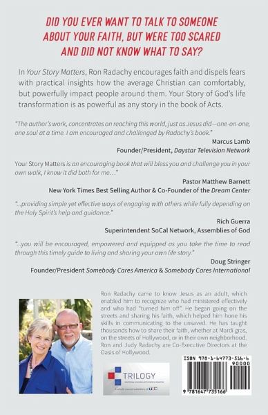Did you ever want to talk to someone about your faith, but were too scared and did not know what to say? In Your Story Matters, Ron Radachy encourages faith and dispels fears with practical insights how the average Christian can comfortably, but powerfully impact people around them. Your Story of God's life transformation is as powerful as any story in the book of Acts.