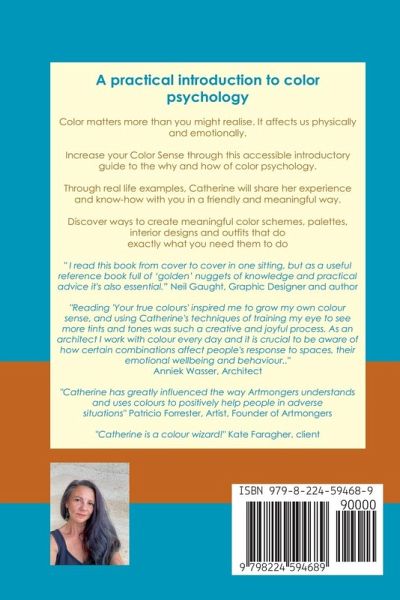 A practical introduction to color psychology. Grow your Color Sense and shine in branding, interior design and personal wardrobe choices Color matters whether you are aware of it or not. We have all got used to seeing color as a purely aesthetic thing but the fact is that it affects your heart rate, your brain activity and many other physiological and psychological aspects. This easy read will help you understand something of why it matters, do some quick exercises to develop your own Color Sense, and see case studies where I have applied this knowledge in real life. What you get Discover what color psychology is and why it matters. Then how to apply what you have learnt, through the exercises throughout the book, to branding, environments and personal use of color. You need to know about color if you areresponsible for environments such as hotels, doctor surgeries or schools making decisions about brand logos, packaging or marketing communications (adverts, leaflets, websites) would like to feel more comfortable in your home want the colors you wear to work with you and your strengths Testimonials "Colour really matters and probably a whole lot more than you think. I read this book from cover to cover in one sitting but it as a useful reference book full of 'golden' nuggets of knowledge and practical advice it's also essential. Well done Catherine!" Neil Gaught, Founder Neil Gaught & Associates "Reading 'Your true colours' inspired me to grow my own colour sense, and using Catherine's techniques of training my eye to see more tints and tones was such a creative and joyful process. As an architect I work with colour every day and it is crucial to be aware of how certain combinations affect people's response to spaces, their emotional wellbeing and behaviour. This book is a great introduction to exactly that in both a personal and professional setting. It is full of refreshing anecdotes and beautifully illustrated example projects to encourage you to get started with your own colour palettes right away." Anniek Wasser, Architect "Catherine has greatly influenced the way Artmongers understands and uses colours to positively help people in adverse situations" Patricio Forrester, Artist, Founder of Artmongers "Catherine is a colour wizard!"Kate Faragher, client.