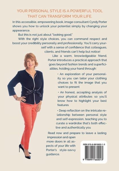 Your personal style is a powerful tool that can transform your life. In this accessible, empowering book, image consultant Cyndy Porter shows you how to unlock your potential simply by changing your appearance. But this is not just about "looking good." With the right style choices, you can command respect and boost your credibility personally and professionally. You'll carry yourself with a sense of confidence that colleagues, clients, and friends can't help but notice! Like a warm, knowledgeable friend, Porter introduces a practical approach that goes beyond fashion trends and superficialities, holding your hand through: ¿ An exploration of your personality so you can tailor your clothing choices to fit the image that you want to present ¿ An honest, accepting analysis of your physical attributes so you'll know how to highlight your best features ¿ Deep reflection on the intricate relationship between personal style and self-expression, teaching you to curate a wardrobe that's both effective and authentically you Read now and prepare to leave a lasting impression and open more doors in all aspects of your life with Porter's style-savvy guidance.