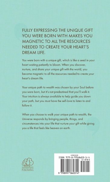 Fully expressing the unique gift you were born with makes you magnetic to all the resources needed to create your heart's dream life. You were born with a unique gift, which is like a seed in your heart waiting patiently to bloom. When you discover, nurture, and share your unique gift with the world, you become magnetic to all the resources needed to create your heart's dream life. Your unique path to wealth was chosen by your Soul before you were born, but it's not predestined that you'll walk it. Your intuition is always available to help guide you down your path, but you must have the self-love to listen to and follow it. When you choose to walk your unique path to wealth, the Universe responds by bringing people, things, and circumstances into your life that nurture your gift while giving you a life that feels like heaven on earth.