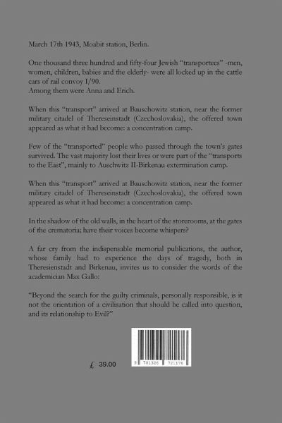March, 17th 1943, Moabit station, Berlin. One thousand three hundred and fifty-four Jewish "transportees", men, women, children, babies and the elderly were all locked up in the cattle cars of rail convoy I/90. Among them, were Anna and Erich. Few of the "transported" people who passed through the town's gates survived. The vast majority lost their life or where part of the "transport to the East", mainly to Auschwitz II-Birkenau extermination camp. Max Gallo, French academician wrote: "beyond the search of the guilty criminals, personnaly responsible, is it not the orientation of a civilisation that should be called into question, and its relationship to Evil?"