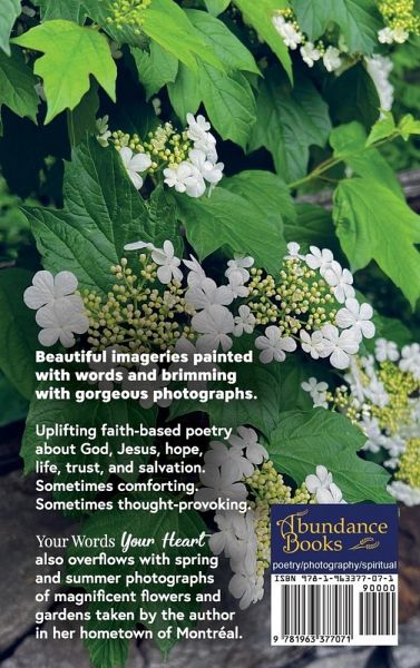 Your Words Your Heart is a beautiful collection of spiritual poetry accompanied by stunning photographs. This book serves as a guide for those seeking inspiration and guidance on their spiritual journey. Each poem is carefully crafted to touch the depths of your soul, while the photographs capture the essence of each verse. As you flip through the pages, you will find yourself immersed in a world of love, hope, and faith. The words within this book are written straight from the heart and are meant to uplift and empower all who read them. From reflections on inner peace to messages of self-discovery, Your Words Your Heart covers a range of topics that will resonate with readers from all walks of life. The combination of poetic verses and captivating images creates a harmonious flow that will leave a lasting impact on your mind and heart. This book is not only meant to be read but also experienced. It encourages readers to reflect on their own spirituality and connects them with their innermost thoughts and emotions. The photographs add another layer to the poetry, creating a deeper understanding and appreciation for the words on each page. Whether you are looking for comfort during difficult times or simply seeking spiritual enlightenment, Your Words Your Heart is the perfect companion. It is a reminder that our words have great power, but it is our hearts that truly make us who we are. So open your heart, let these words guide you, and allow the images to transport you to a place of pure serenity.