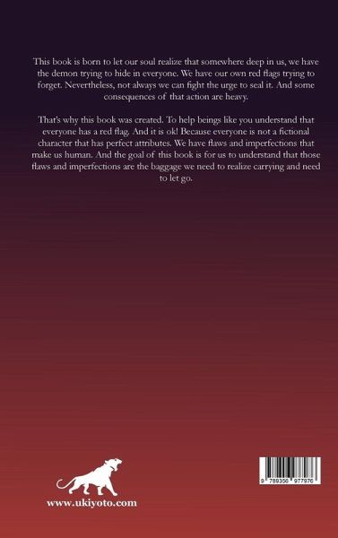 This book is born to let our soul realize that somewhere deep in us, we have the demon trying to hide in everyone. We have our own red flags trying to forget. Nevertheless, not always we can fight the urge to seal it. And some consequences of that action are heavy. That's why this book was created. To help beings like you understand that everyone has a red flag. And it is ok! Because everyone is not a fictional character that has perfect attributes. We have flaws and imperfections that make us human. And the goal of this book is for us to understand that those flaws and imperfections are the baggage we need to realize carrying and need to let go.