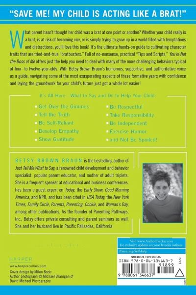 For every parent who has ever wanted to scream, "Save me! My child is acting like a brat!" there's You're Not the Boss of Me. Filling a critical void in parenting manuals, revered childhood development and behavior expert Betsy Brown Braun, bestselling author of Just Tell Me What to Say, dispenses invaluable advice on how to brat-proof kids during the formative ages 4 through 12.