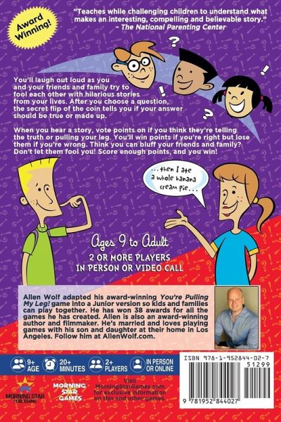 Allen Wolf adapted his award-winning You're Pulling My Leg! game into a Junior version so kids and families can play together. He has won 38 awards for all the games he has created. Allen is also an award-winning author and filmmaker. He's married and loves playing games with his son and daughter at their home in Los Angeles. Follow him at AllenWolf.com.