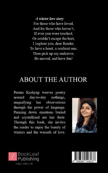 Prerna Kashyap weaves poetry around day-to-day nothings, magnifying her observations through the power of language. Penning down emotions buried and crystallized are her forte. Through this book, she invites the reader to enjoy the beauty of winters and the warmth of love.