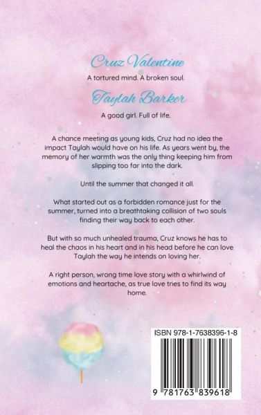 She's my person, I can feel it in my bones. But I'm a broken man and until I heal myself, I have to let her go. Right now, it's just not our time, or maybe she was never mine to keep. After all, some of the most beautiful moments on this earth are merely just passing through. Cruz Valentine A tortured mind. A broken soul. An achromatic life of grey. Taylah Barker A good girl. Full of life. An explosion of light. A chance meeting as young kids, Cruz had no idea the impact Taylah would have on his life. As years went by, the memory of her warmth was the only thing keeping him from slipping too far into the dark. Until the summer that changed it all. What started out as a forbidden romance just for the summer, turned into a breathtaking collision of two souls finding their way back to each other. But with so much unhealed trauma, Cruz knows he has to heal the chaos in his heart and in his head before he can love Taylah the way he intends on loving her. A right person, wrong time love story with a whirlwind of emotions and heartache, as true love tries to find its way home. Domestic Violence is mentioned and portrayed throughout. Book One of the Tortured Hearts Series.