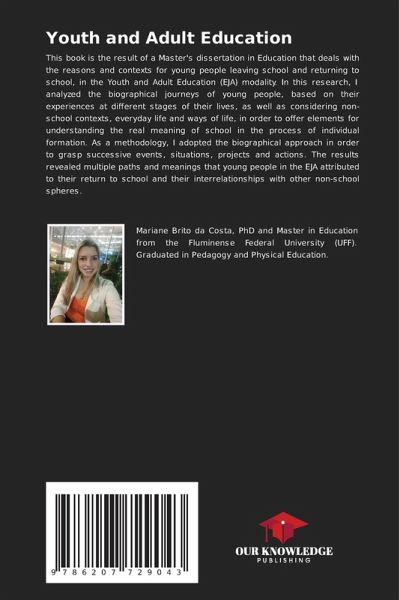 This book is the result of a Master's dissertation in Education that deals with the reasons and contexts for young people leaving school and returning to school, in the Youth and Adult Education (EJA) modality. In this research, I analyzed the biographical journeys of young people, based on their experiences at different stages of their lives, as well as considering non-school contexts, everyday life and ways of life, in order to offer elements for understanding the real meaning of school in the process of individual formation. As a methodology, I adopted the biographical approach in order to grasp successive events, situations, projects and actions. The results revealed multiple paths and meanings that young people in the EJA attributed to their return to school and their interrelationships with other non-school spheres.