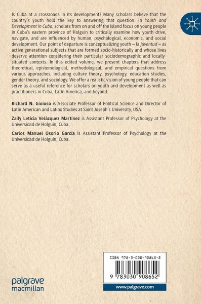 As young people constitute the future development of Cuba, constant analysis of their diverse life experiences is necessary in new and diverse publications by a variety of researchers. This book examines how youth practices intersect with and are influenced by development - economic, human, psychological, social - and how young people negotiate and influence development trends in Cuba. The point of departure for Youth and Development in Cuba is a pluralistic understanding of youth(s) - that is, juventud(es) in Spanish - seen as an active generational subject, influenced sociohistorically, as a kind of collective identity. The collection of chapters from international scholars addresses issues relevant to young people, their experiences and participation in a variety of contexts and explores the diversity of factors that intervene in and shape the current problématiques of young people in Cuba's eastern province of Holguín