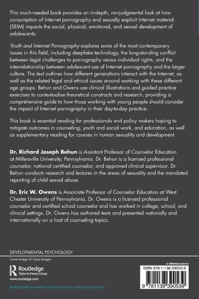 Youth and Internet Pornography explores some of the most contemporary issues in this field, including deepfake technology, the long-standing conflict between legal challenges to pornography versus individual rights, and the interrelationship between adolescent use of Internet pornography and the larger culture. The text outlines how different generations interact with the Internet, as well as the related legal and ethical issues around working with these different age groups. Behun and Owens use clinical illustrations and guided practice exercises to contextualise theoretical constructs and research, providing a comprehensive guide to how those working with young people should consider the impact of Internet pornography in their day-to-daypractice.