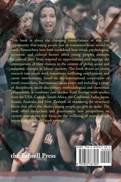 This book is about the changing constellations of risk and opportunity that young people face in transitions from school to work. Researchers here have considered how social, psychological, economic and cultural factors affect young people's attempts to control their lives, respond to opportunities and manage the consequences of their choices, in the context of global, social and economic changes in labour markets. The book draws on recent research into youth work transitions, wellbeing, employment, and career interventions, based on the international cooperation of youth researchers. International in its scope and including a range of disciplinary, multi-disciplinary, methodological and theoretical perspectives, it combines case studies from Europe with studies from the USA, Canada, South Africa, the Caribbean, India, Japan, Russia, Australia and New Zealand, all examining the structural forces that affect the choices young people are able to make. The book offers researchers and practitioners new perspectives on current approaches that focus on the wellbeing of young people beyond education and work settings.