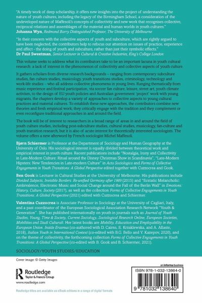 It gathers scholars from diverse research backgrounds - ranging from contemporary subculture studies, fan culture studies, musicology, youth transitions studies, criminology, technology and work-life studies - who all address collective phenomena in young lives. Ranging thematically from music experience and festival participation, via soccer fan culture, leisure, street art, youth climate activism, to the design of EU youth policies and Australian government 'project' work with young migrants, the chapters develop a variety of approaches to collective aspects to young cultural practices and material cultures. To establish these new approaches, the contributors combine new theories and fresh empirical work; they critically engage with the tradition and they complementor even reconfigure traditional approaches in and around the field.