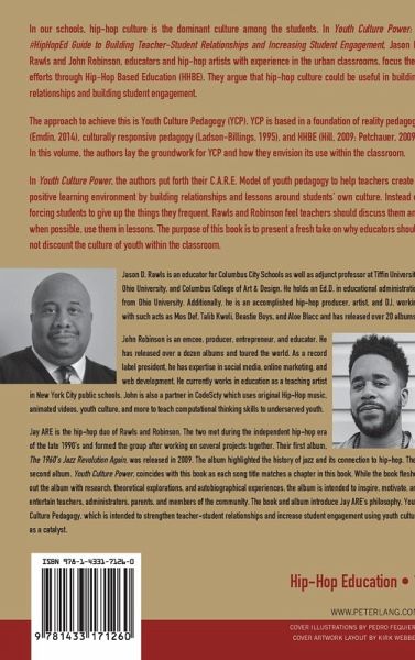 Jason D. Rawls is an educator for Columbus City Schools as well as adjunct professor at Tiffin University, Ohio University, and Columbus College of Art & Design. He holds an Ed.D. in educational administration from Ohio University. Additionally, he is an accomplished hip-hop producer, artist, and DJ, working with such acts as Mos Def, Talib Kweli, Beastie Boys, and Aloe Blacc and has released over 20 albums. John Robinson is an emcee, producer, entrepreneur, and educator. He has released over a dozen albums and toured the world. As a record label president, he has expertise in social media, online marketing, and web development. He currently works in education as a teaching artist in New York City public schools. John is also a partner in CodeScty which uses original Hip-Hop music, animated videos, youth culture, and more to teach computational thinking skills to underserved youth. Jay ARE is the hip-hop duo of Rawls and Robinson. The two met during the independent hip-hop era of the late 1990¿s and formed the group after working on several projects together.Their first album, The 1960¿s Jazz Revolution Again, was released in 2009. The album highlighted the history of jazz and its connection to hip-hop. Their second album, Youth Culture Power, coincides with this book as each song title matches a chapter in this book. While the book fleshes out the album with research, theoretical explorations, and autobiographical experiences, the album is intended to inspire, motivate, and entertain teachers, administrators, parents, and members of the community. The book and album introduce Jay ARE¿s philosophy, Youth Culture Pedagogy, which is intended to strengthen teacher-student relationships and increase student engagement using youth culture as a catalyst.
