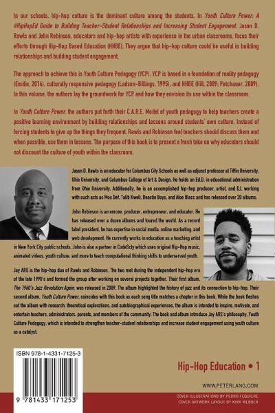 Jason D. Rawls is an educator for Columbus City Schools as well as adjunct professor at Tiffin University, Ohio University, and Columbus College of Art & Design. He holds an Ed.D. in educational administration from Ohio University. Additionally, he is an accomplished hip-hop producer, artist, and DJ, working with such acts as Mos Def, Talib Kweli, Beastie Boys, and Aloe Blacc and has released over 20 albums. John Robinson is an emcee, producer, entrepreneur, and educator. He has released over a dozen albums and toured the world. As a record label president, he has expertise in social media, online marketing, and web development. He currently works in education as a teaching artist in New York City public schools. John is also a partner in CodeScty which uses original Hip-Hop music, animated videos, youth culture, and more to teach computational thinking skills to underserved youth. Jay ARE is the hip-hop duo of Rawls and Robinson. The two met during the independent hip-hop era of the late 1990¿s and formed the group after working on several projects together.Their first album, The 1960¿s Jazz Revolution Again, was released in 2009. The album highlighted the history of jazz and its connection to hip-hop. Their second album, Youth Culture Power, coincides with this book as each song title matches a chapter in this book. While the book fleshes out the album with research, theoretical explorations, and autobiographical experiences, the album is intended to inspire, motivate, and entertain teachers, administrators, parents, and members of the community. The book and album introduce Jay ARE¿s philosophy, Youth Culture Pedagogy, which is intended to strengthen teacher-student relationships and increase student engagement using youth culture as a catalyst.