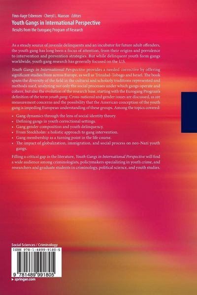 Youth Gangs in International Perspective provides a needed corrective by offering significant studies from across Europe, as well as Trinidad-Tobago and Israel. The book spans the diversity of the field in the cultural and scholarly traditions represented and methods used, analyzing not only the social processes under which gangs operate and cohere, but also the evolution of the research base, starting with the Eurogang Program's definition of the term youth gang. Cross-national and gender issues are discussed, as are measurement concerns and the possibility that the American conception of the youth gang is impeding European understanding of thesegroups. Among the topics covered: