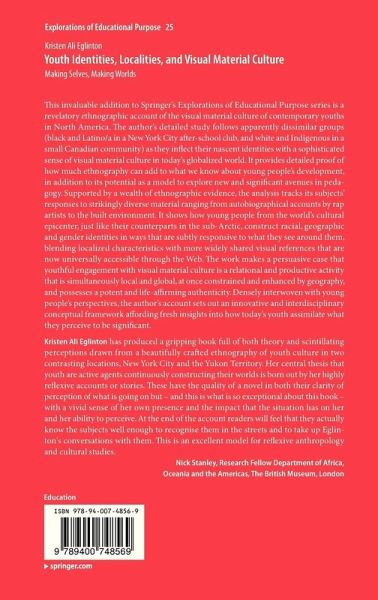 This invaluable addition to Springer's Explorations of Educational Purpose series is a revelatory ethnographic account of the visual material culture of contemporary youths in North America. The author's detailed study follows apparently dissimilar groups (black and Latino/a in a New York City after-school club, and white and Indigenous in a small Canadian community) as they inflect their nascent identities with a sophisticated sense of visual material culture in today's globalized world. It provides detailed proof of how much ethnography can add to what we know about young people's development, in addition to its potential as a model to explore new and significant avenues in pedagogy.
