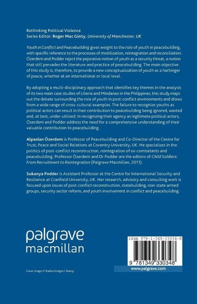 Professor Alpaslan Özerdem is Co-Director of the Centre for Trust, Peace and Social Relations at Coventry University, UK. He specialises in the politics of post-conflict reconstruction; reintegration of ex-combatants and peacebuilding. Professor Özerdem and Dr Podder are the editors of Child Soldiers: From Recruitment to Reintegration (Palgrave, 2011). Sukanya Podder is Assistant Professor at the Centre for International Security and Resilience at Cranfield University, UK. Her research, advisory and consulting work is focused upon issues of post-conflict reconstruction; statebuilding; non-state armed groups; security sector reform and youth involvement in conflict and peacebuilding.