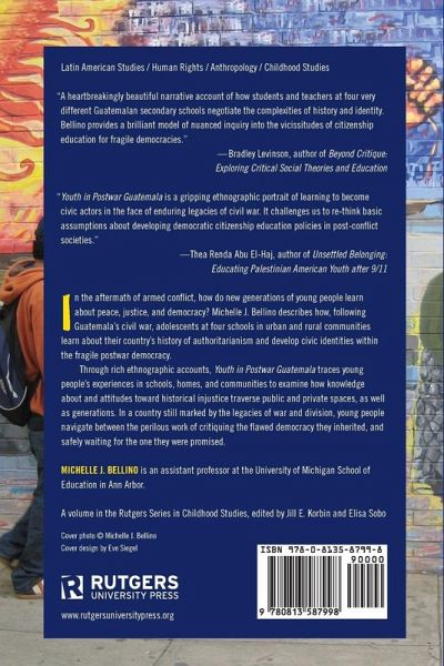 Winner of the 2018 Comparative & International Education Society's Jackie Kirk Outstanding Book Award and the 2018 Council on Anthropology of Education's Outstanding Book Award In the aftermath of armed conflict, how do new generations of young people learn about peace, justice, and democracy? Michelle J. Bellino describes how, following Guatemala’s civil war, adolescents at four schools in urban and rural communities learn about their country’s history of authoritarianism and develop civic identities within a fragile postwar democracy. Through rich ethnographic accounts, Youth in Postwar Guatemala, traces youth experiences in schools, homes, and communities, to examine how knowledge and attitudes toward historical injustice traverse public and private spaces, as well as generations. Bellino documents the ways that young people critically examine injustice while shaping an evolving sense of themselves as civic actors. In a country still marked by the legacies of war and division, young people navigate between the perilous work of critiquing the flawed democracy they inherited, and safely waiting for the one they were promised...