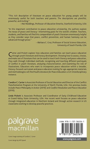 Carter and Pickett explore how educators and families can teach peace education through youth literature and literacy development. Showing how to assess, choose, and make use of literature that can be used to teach both literacy and peace education, they walk through individual methods: recognizing and teaching different portrayals of conflict in youth literature, analyzing characterization, and examining the role of illustrations. Educators who want to incorporate peace education within a broader, literacy-focused curriculum, and peace educators looking for age-appropriate materials and methodologies will find Youth Literature for Peace Education a rich and interdisciplinary resource.