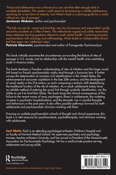 Part 1: Antecedents 1. Rites of Passage and Suicide: The youth mental health crisis, Van Gennep, and Durkheim 2. An Oedipal odyssey: Freud's iterations of the father 3. Lacanian glosses on Freudian bosses: Further thoughts on the father Part 2: The Disease of the Infinite 4. For the love of God almighty: A Brief History of the Social Link and Civil Religion in the US 5. The Impact of Consumer Capitalism on the Social Link 6. A Broken Image: Technological Advancement and Youth Mental Health Part III: Le Mal de la Jeunesse 7. The Murder of Agamemnon 8. Stigma and Stigmata 9. The Loss of Not Knowing Part 4: Psychoanalysis in Society 10. Crooked Cures 11. Elements of an Ethical Response 12. Fantasia