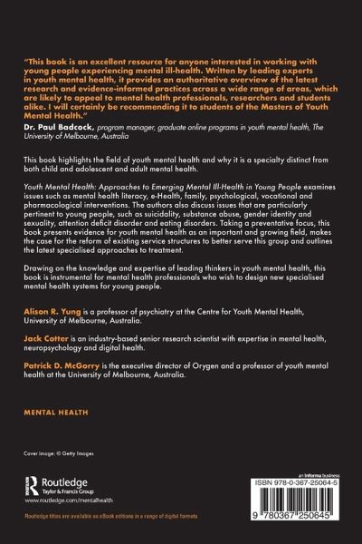 "This book is an excellent resource for anyone interested in working with young people experiencing mental ill-health. Written by leading experts in youth mental health, it provides an authoritative overview of the latest research and evidence-informed practices across a wide range of areas, which are likely to appeal to mental health professionals, researchers and students alike. I will certainly be recommending it to students of the Masters of Youth Mental Health."