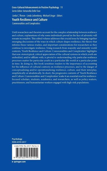 Until researchers and theorists account for the complex relationship between resilience and culture, explanations of why some individuals prevail in the face of adversity will remain incomplete. This edited volume addresses this crucial issue by bringing together emerging discussions of the ways in which culture shapes resilience, the theory that informs these various studies, and important considerations for researchers as they continue to investigate resilience. Using research from majority and minority world contexts, 'Youth Resilience and Culture: Commonalities and Complexities' highlights that non-stereotypical, critical appreciation of the cultural systems in which youth are embedded, and/or affiliate with, is pivotal to understanding why particular resilience processes matter for particular youth in a particular life-world at a particular point in time. In doing so, this book sensitizes readers to the importance of accounting for the influence of cultural contexts on resilience processes, and to the danger of conceptualising and/or operationalising resilience, culture, and their interplay, simplistically or idealistically. In short, the progressive contents of 'Youth Resilience and Culture: Commonalities and Complexities' make it an essential read for resilience-focused scholars, students, academics, and researchers, as well as policy makers, practitioners, and humanitarian workers engaged with high-risk populations.