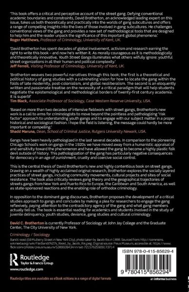 'Based on more than two decades of intensive fieldwork with street gangs, Brotherton's new work is a call to arms for criminologists to move beyond the pointless and pathologizing "risk factor" approach to understanding youth gangs and to engage with our subject matter in a proper historical and sociological fashion. I hope the field is listening, the message could hardly be more important or compelling.' - Shadd Maruna, Dean, School of Criminal Justice, Rutgers University Newark, USA