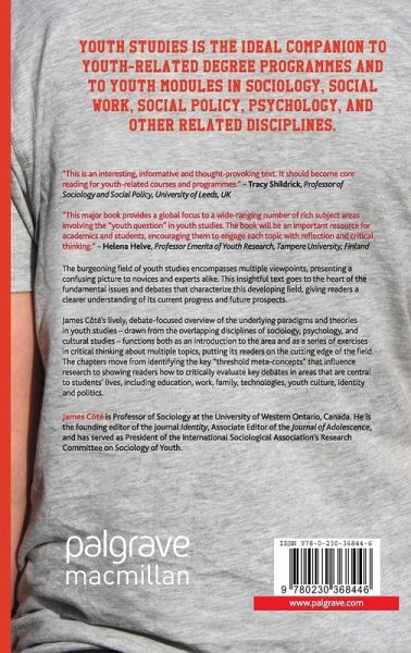 The burgeoning field of youth studies encompasses multiple viewpoints, presenting a confusing picture to novices and experts alike. This insightful text goes to the heart of the fundamental issues and debates that characterize this developing field, giving readers a clearer understanding of its current progress and future prospects. James Côté's lively, debate-focused overview of the underlying paradigms and theories in youth studies - drawn from the overlapping disciplines of sociology, psychology and cultural studies - functions both as an introduction to the area and as an exercise in critical thinking, putting its readers on the cutting-edge of the field. The chapters move from identifying the key 'threshold meta-concepts' that influence research, to showing readers how to critically evaluate key debates in areas that are central to students' lives, including education, work, family, technologies, youth culture, identity and politics. Youth Studies is the ideal companion to youth-related degree programmes and to youth modules in sociology, social work, social policy, psychology and other related disciplines.