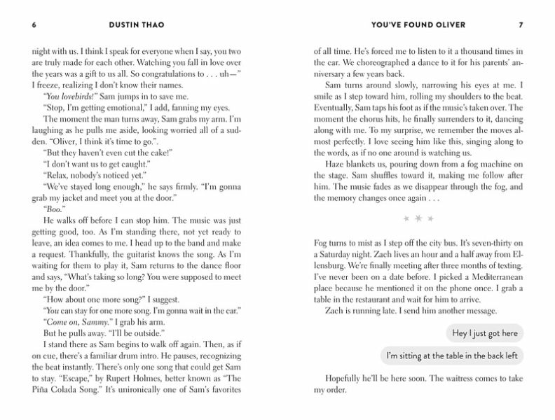 Dustin Thao's heart-wrenching companion to the TikTok sensation and New York Times bestselling You've Reached Sam is an emotional rollercoaster: a compelling love story filled with yearning, romance and a touch of magic. Readers obsessed over You've Reached Sam: 'Beautifully written and executed. It's gut wrenching and introspective. Just wow' 'Filled with so much love and hope' 'It was the most beautiful book I've read' 'I sobbed for 296 pages' "No one writes romance like Dustin Thao and this one is a beauty." -Kathleen Glasgow on You've Found Oliver It's been a year since his best friend, Sam, died. Even though Oliver knows he won't get a response, he can't stop texting Sam's number, especially as the anniversary of his death approaches. Then one day he accidentally hits the call button, and someone picks up. Sam's number was reassigned and a stranger has been receiving Oliver's private and vulnerable messages for months. But Ben, a college student in Seattle, won't remain a stranger for long. When they finally meet in person, their spark is undeniable. Everything seems perfect until Oliver discovers something impossible and strange that will keep them from being together . . .