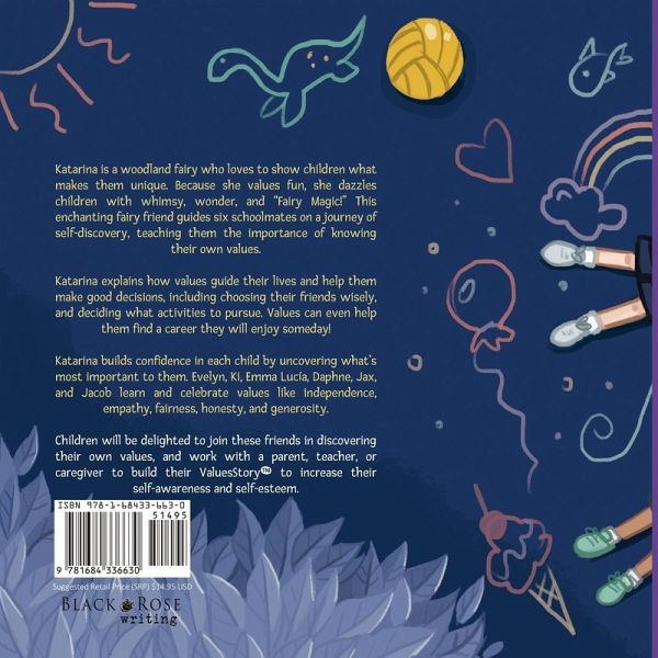You've Got Values! is a Mom's Choice Awards® Gold Recipient Katarina is a woodland fairy who loves to show children what makes them unique. Because she values fun, she dazzles children with whimsy, wonder, and "Fairy Magic!" This enchanting fairy friend guides six schoolmates on a journey of self-discovery, teaching them the importance of knowing their own values. Katarina explains how values guide their lives and help them make good decisions, including choosing their friends wisely, and deciding what activities to pursue. Values can even help them find a career they will enjoy someday! Katarina builds confidence in each child by uncovering what's most important to them. Evelyn, Ki, Emma Lucía, Daphne, Jax, and Jacob learn and celebrate values like independence, empathy, fairness, honesty, and generosity. Children will be delighted to join these friends in discovering their own values, and work with a parent, teacher, or caregiver to build their ValuesStory(TM) to increase their self-awareness and self-esteem.