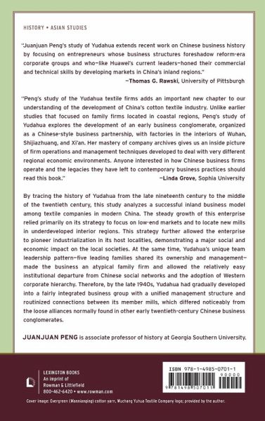 This study traces the history of China's Yudahua Business Group from the 1890s to the 1950s. The author examines the textile company's leadership model and its strategies to locate new mills in industrially underdeveloped interior regions.