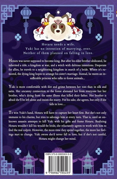 Hotaru needs a wife. Yuki has no intention of marrying, ever. Neither of them planned on falling in love. Hotaru was never supposed to become king. But after his elder brother abdicated, he inherited a title, a kingdom at war, and a witch with dubious intentions. Desperate for allies, he travels to a neighboring kingdom in search of a bride. Where it's rumored, the dying king hopes to arrange his sister's marriage. Instead, he meets an insufferable princess who talks to forest animals... Yuki is more comfortable with dirt and grime between her toes than in silk and satin. Her uncanny connection to the forest alienated her from everyone but her brother, who's dying from the same illness that killed their father. Her brother is afraid she'll be left alone and insists she marry. For his sake, she agrees, but only if she falls in love... To win Yuki's hand, Hotaru will have to capture her heart first. But she's not only immune to his charms, but tries to sabotage him at every turn. That is until an unknown assassin attempts to kill Yuki with his gifts and frame Hotaru. Realizing Hotaru wouldn't kill his would-be bride, she reluctantly agrees to work with him to find the real culprit. However, the more time they spend together, the more her feelings change. Yuki swore she'd never fall in love, but if she's not careful, Hotaru might sway her heart.
