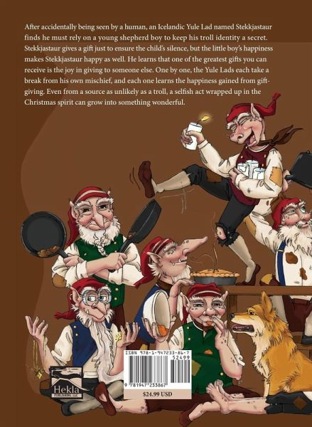 After accidentally being seen by a human, an Icelandic Christmas troll must rely on a young shepherd boy to keep his presence in the village a secret. The troll makes a gift as a bribe for the little boy's silence but is surprised at the child's happiness. The troll soon learns that giving joy to someone else can be one of the greatest gift you can receive. He shares this secret with his twelve troll brothers and one by one, they each find the meaning of Christmas spirit. Even from a source as unlikely as a troll, something that starts as a selfish act, when wrapped up in Christmas spirit can grow into something wonderful. A modernized version of the Icelandic Yule Lads folk tale. FULLY ILLUSTRATED