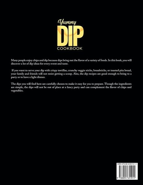 Many people enjoy chips and dip because dips bring out the flavor of a variety of foods. In this book, you will discover a lot of dip ideas for every event and taste. If you want to serve your dip with crispy tortillas, crunchy veggie sticks, breadsticks, or toasted pita bread, your family and friends will not resist getting a scoop. Also, the dip recipes are good enough to bring to a party or to have a light dinner. The dips you will find here are carefully chosen to make it easy for you to prepare. Though the ingredients are simple, the dips will not be out of place at a fancy party and can complement the flavor of chips and vegetables.