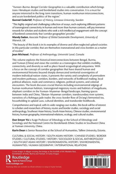 This book explores the historical interconnections between Bengal, Burma, and Yunnan (China), and views the corridor as a transregion that exhibits mobility, connectivity and diversity as well as place-based ecogeological uniqueness. With a focus on the concept of corridor geographies that have shared human and environmental histories beyond sharply demarcated territorial sovereignties of modern individual nation-states, it presents the variety and complexity of premodern and modern pathways, corridors, borders, and networks of livelihood-making, local political alliances, trade and commerce, religions, political systems, and colonial encounters. The book discusses crucial themes including environmental edgings of human-nonhuman habitats, transregional migratory routes and habitats of megafauna, elephant corridors in Yunnan-Myanmar-Bengal landscape, framing spaces between India and China, Tibetan-Myanmar corridors, transboundary river systems, narratives of a Rohingya jade trader, cross-border flow of De'ang's fermented tea, householding in upland Laos, cultural identities, and trans-border livelihoods. Comprehensive and topical, with its wide-ranging case studies, this book will be of interest to scholars and researchers of history, routes and border studies, sociology and social anthropology, South East Asian history, South Asian history, Chinese studies, environmental history, human geography, international relations, ecology, and cultural studies.