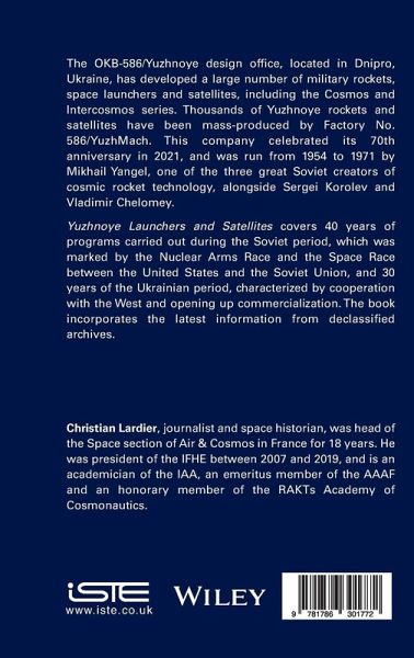 The OKB-586/Yuzhnoye design office, located in Dnipro, Ukraine, has developed a large number of military rockets, space launchers and satellites, including the Cosmos and Intercosmos series. Thousands of Yuzhnoye rockets and satellites have been mass-produced by Factory No. 586/YuzhMach. This company celebrated its 70th anniversary in 2021, and was run from 1954 to 1971 by Mikhail Yangel, one of the three great Soviet creators of cosmic rocket technology, alongside Sergei Korolev and Vladimir Chelomey. Yuzhnoye Launchers and Satellites covers 40 years of programs carried out during the Soviet period, which was marked by the Nuclear Arms Race and the Space Race between the United States and the Soviet Union, and 30 years of the Ukrainian period, characterized by cooperation with the West and opening up commercialization. The book incorporates the latest information from declassified archives.