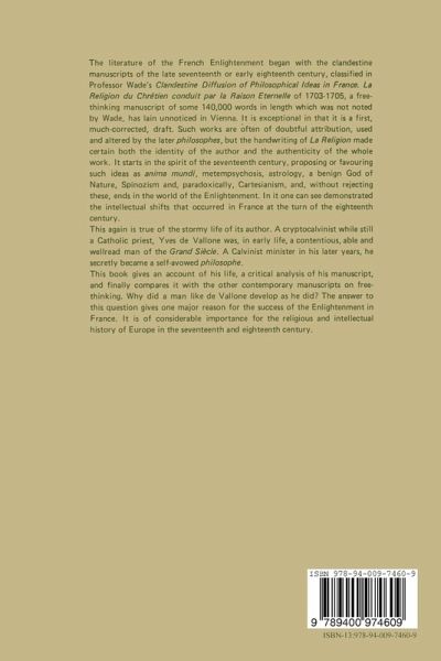 The writing of the second part of this book presented a peculiar difficulty. On the one hand I had the great advantage of having found the first rough draft of the manuscript La Religion du Chretien, corrected and often recorrected. Authorship could eventually be established beyond shadow of doubt, and in the corrections one could see de Vallone changing his opinions as he wrote. On the other the sheer length of the manuscript - about 140,000 words - plus the num ber of corrections - well over 3,000, many of them lengthy - the enormous number of references in the text to the Classics, to the Scriptures and Apochrypha, to the Fathers, to Philosophers, ancient and contemporary or near contemporary to de Vallone, and to a considerable number of other contem porary authors, all of which would require a footnote (not to speak of other footnotes necessary as comments on the text itself) made the production of a critical edition a financial impossibility. Instead I decided, for the sakeof scholars interested in this type of manuscript, to give a full, i. ndeed meticulous perhaps too meticulous - digest of the manuscript with a running commentary, showing the influences working on de Vallone, the intellectual atmosphere in which he lived, indicating the significance of all the major revisions and correc tions in his text and commenting on what one can only describe as his own world-theory and on his use of his authorities and of their influence upon him.