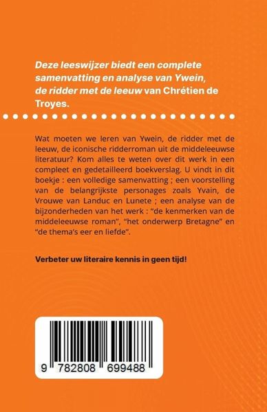 Wat moeten we leren van Ywein, de ridder met de leeuw, de iconische ridderroman uit de middeleeuwse literatuur? Kom alles te weten over dit werk in een compleet en gedetailleerd boekverslag. U vindt in dit boekje : - Een volledige samenvatting - Een voorstelling van de belangrijkste personages zoals Yvain, de Vrouwe van Landuc en Lunete - Een analyse van de bijzonderheden van het werk: de kenmerken van de middeleeuwse roman, het onderwerp Bretagne en de thema's eer en liefde Een referentieanalyse om snel de betekenis van het werk te begrijpen.