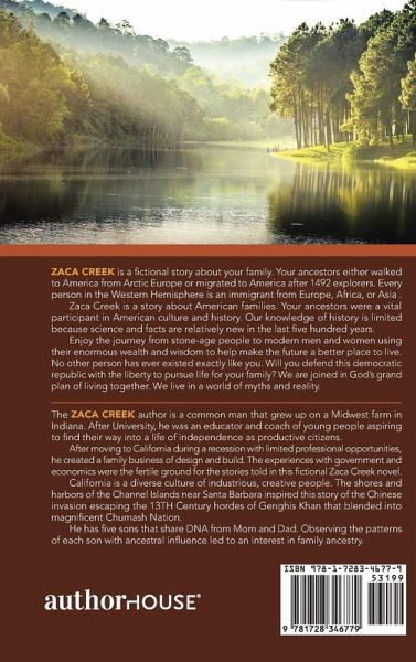 Zaca Creek is a fictional story about your family. Your ancestors either walked to America from Arctic Europe or migrated to America after 1492 explorers. Every person in the Western Hemisphere is an immigrant from Europe, Africa, or Asia . Zaca Creek is a story about American families. Your ancestors were a vital participant in American culture and history. Our knowledge of history is limited because science and facts are relatively new in the last five hundred years. Enjoy the journey from stone-age people to modern men and women using their enormous wealth and wisdom to help make the future a better place to live. No other person has ever existed exactly like you. Will you defend this democratic republic with the liberty to pursue life for your family? We are joined in God's grand plan of living together. We live in a world of myths and reality.