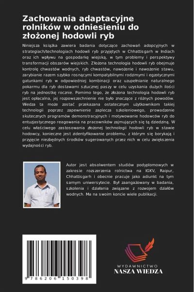 Niniejsza ksi¿¿ka zawiera badania dotycz¿ce zachowä adopcyjnych w strategiach/technologiach hodowli ryb przyj¿tych w Chhattisgarh w Indiach oraz ich wp¿ywu na gospodark¿ wiejsk¿, w tym problemy i perspektywy transformacji obszarów wiejskich. Z¿o¿ona technologia hodowli ryb obejmuje kontrol¿ chwastów wodnych, ryb chwastów, nawo¿enie i nawo¿enie stawu, zarybianie razem szybko rosn¿cymi kompatybilnymi rodzimymi i egzotycznymi gatunkami ryb w odpowiedniej kombinacji oraz uzupe¿nianie naturalnego pokarmu dla ryb dostawami sztucznej paszy w celu uzyskania du¿ych ilo¿ci ryb na jednostk¿ rocznie. Pomimo tego, ¿e z¿o¿ona technologia hodowli ryb jest op¿acalna, jej rozpowszechnienie nie by¿o znacz¿ce z ró¿nych powodów. Wiedza ta mo¿e zostä przekazana ostatecznym u¿ytkownikom takiej technologii poprzez zapewnienie zaplecza szkoleniowego, prowadzenie skutecznych programów demonstracyjnych i motywowanie hodowców ryb do entuzjastycznego reagowania na pracowników zajmuj¿cych si¿ t¿ dziedzin¿. W celu w¿äciwego zastosowania z¿o¿onej technologii hodowli ryb w stawie hodowcy, konieczne jest zidentyfikowanie problemu, z którym si¿ borykaj¿ i przyj¿cie niezb¿dnych ¿rodków sugerowanych przez nich w celu zwi¿kszenia wydajno¿ci ryb.