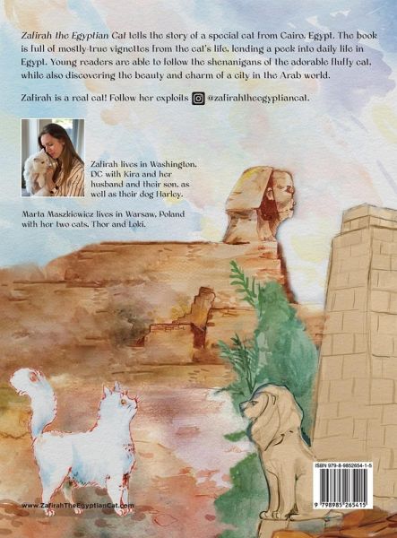 Zafirah the Egyptian Cat tells the story of a special cat from Cairo, Egypt. The book is full of mostly-true vignettes from the cat's life, lending a peek into daily life in Egypt. Young readers are able to follow the shenanigans of the adorable fluffy cat, while also discovering the beauty and charm of a city in the Arab world. Created especially for children who may not know much about this part of the world, as well as those who do! Learn about daily life in Egypt through Zafirah, a beautiful cat with a cheeky personality Immerse young eyes in engaging watercolor illustration based on real places or situations Inspire children to learn more about the world and explore the cultures within it